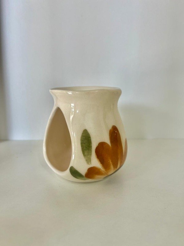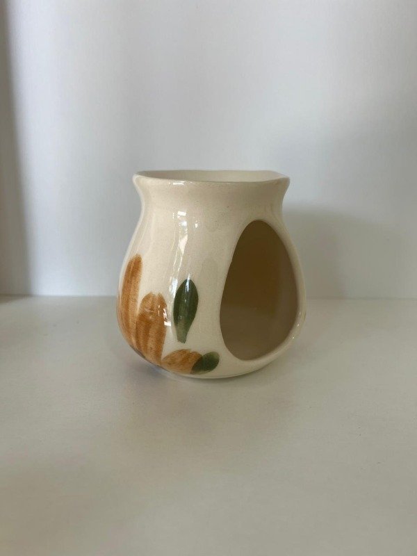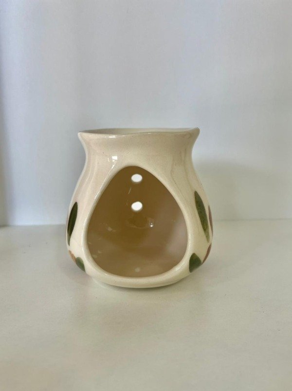 Diseño simple y natural con acabado crema y detalles en tonos tierra. Ideal para esencias o aromatizadores. Su estilo artesanal y suave forma aportan calidez y calma a cualquier espacio.